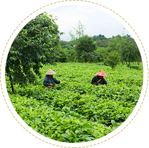 第一階段:鮮葉。英紅茶的鮮葉原料摘取自英紅鎮核心原產地原生態茶園鮮嫩芽葉,茶樹種植不用化肥農藥,原料優中選優。